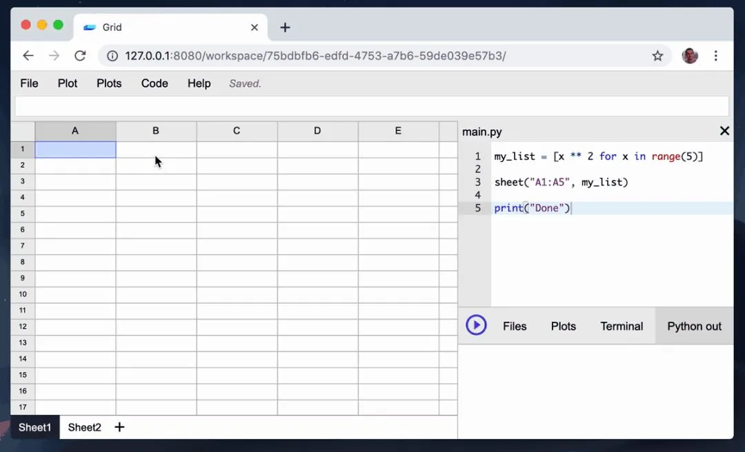 在 Grid Studio 中可以直接通过 Python 读写电子表格。