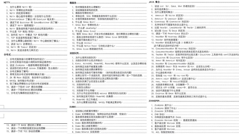 除了按大厂,还按Java技术栈的维度,给你梳理了Java的15个核心技术点:Java I/O、JVM、Kafka、MySQL、Netty 、Dubbo、ZooKeeper、MyBatis、Redis、Spring、消息队列、分布式、微服务、并发编程、Java 综合,全都包含在里面!