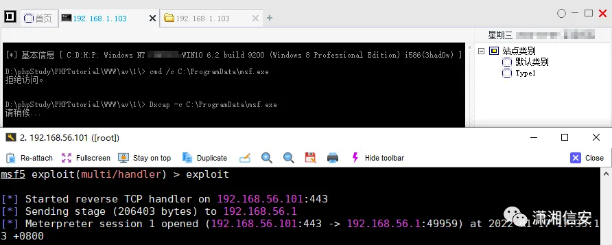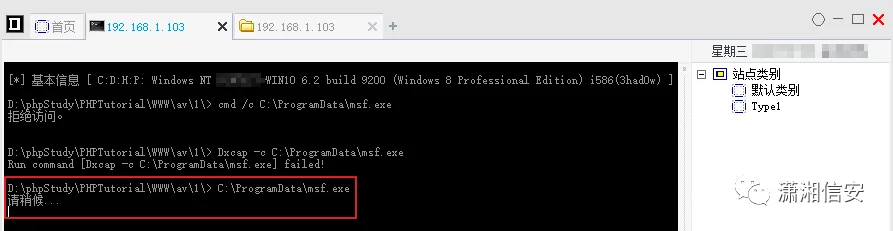 MSF的PHP Payload可以获取会话,但有很多命令都执行不了,如:ps、kill、shell、migrate、hashdump、mimikatz等,execute执行马时还是会被拦截。
