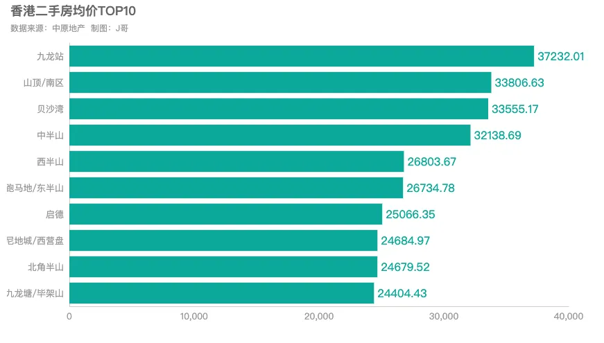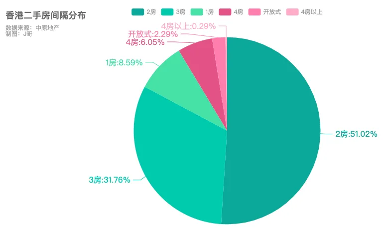 九龙站、山顶/南区、贝沙湾和中半山在售二手房均价超过$3万/呎,九龙站以$37232/呎遥遥领先,远高于香港二手房整体均价。小户型为主,2房占比超一半