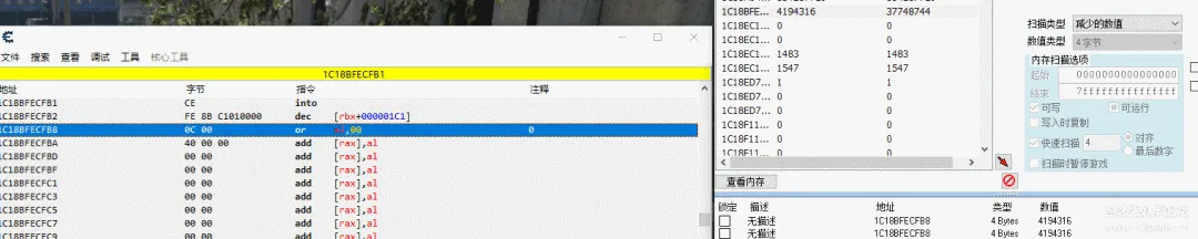 关闭无敌时候,可能会有数值减少,可能有一个数值或者开关,会变为0。这时搜索减少的数值