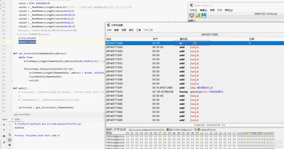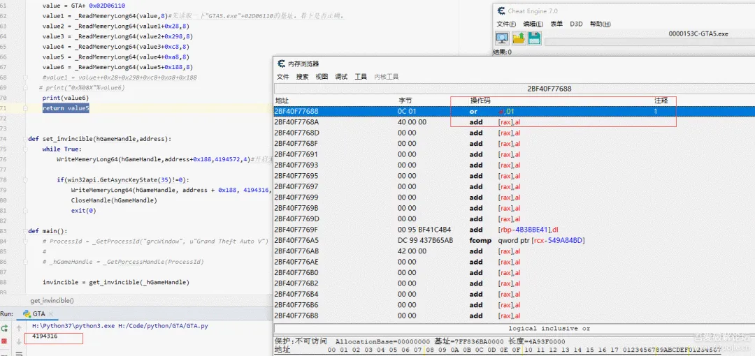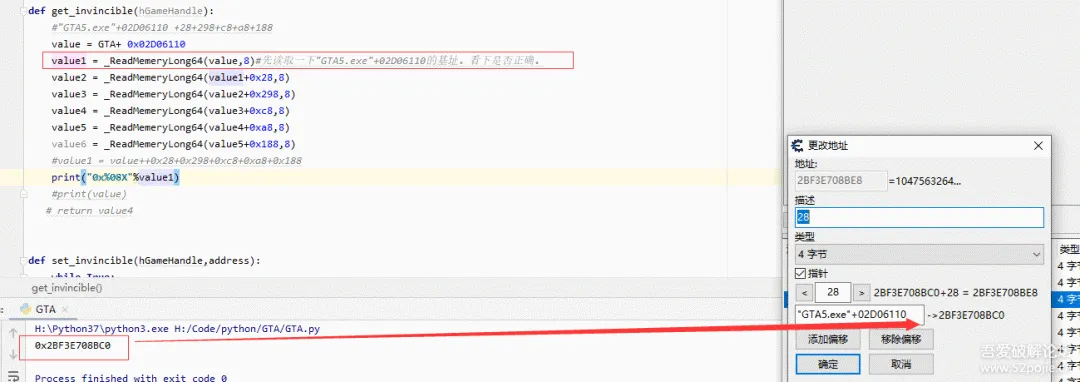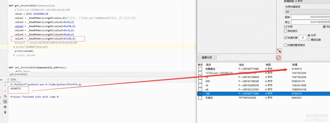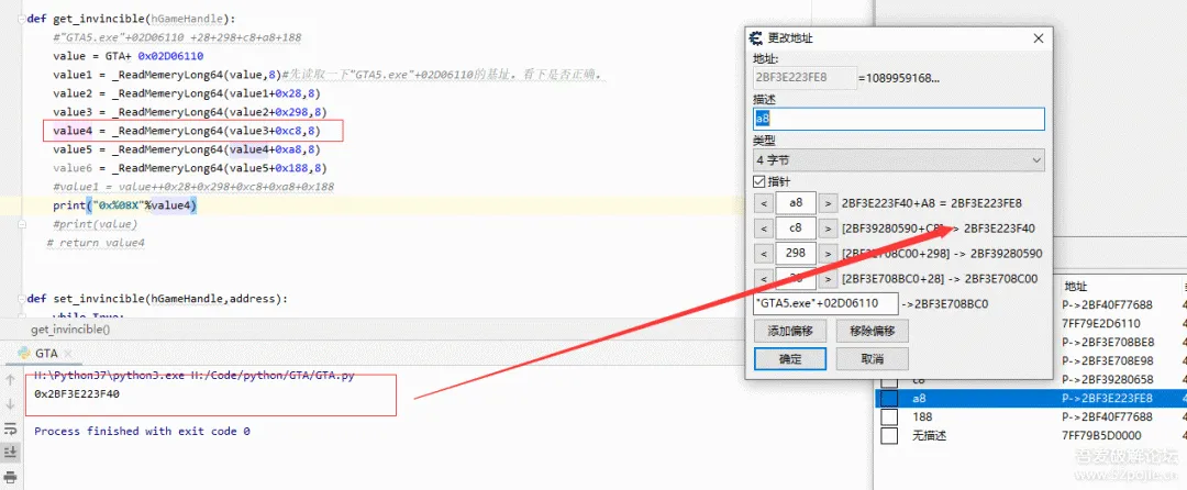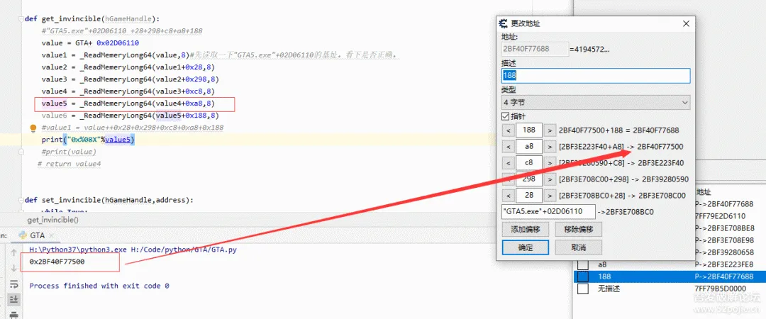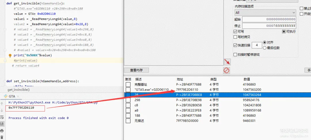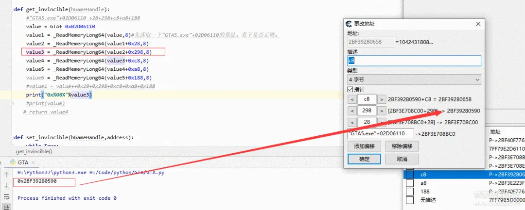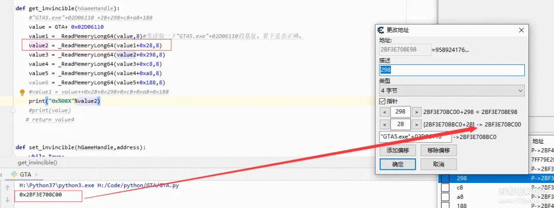 value1 = _ReadMemeryLong64(value,8)#先读取一下"GTA5.exe"+02D06110的基址。看下是否正确。