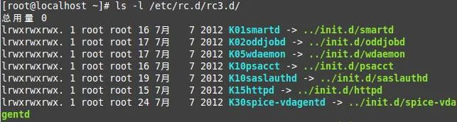 [root@localhost ~]# ln -s /etc/init.d/sshd /etc/rc.d/rc3.d/S100ssh