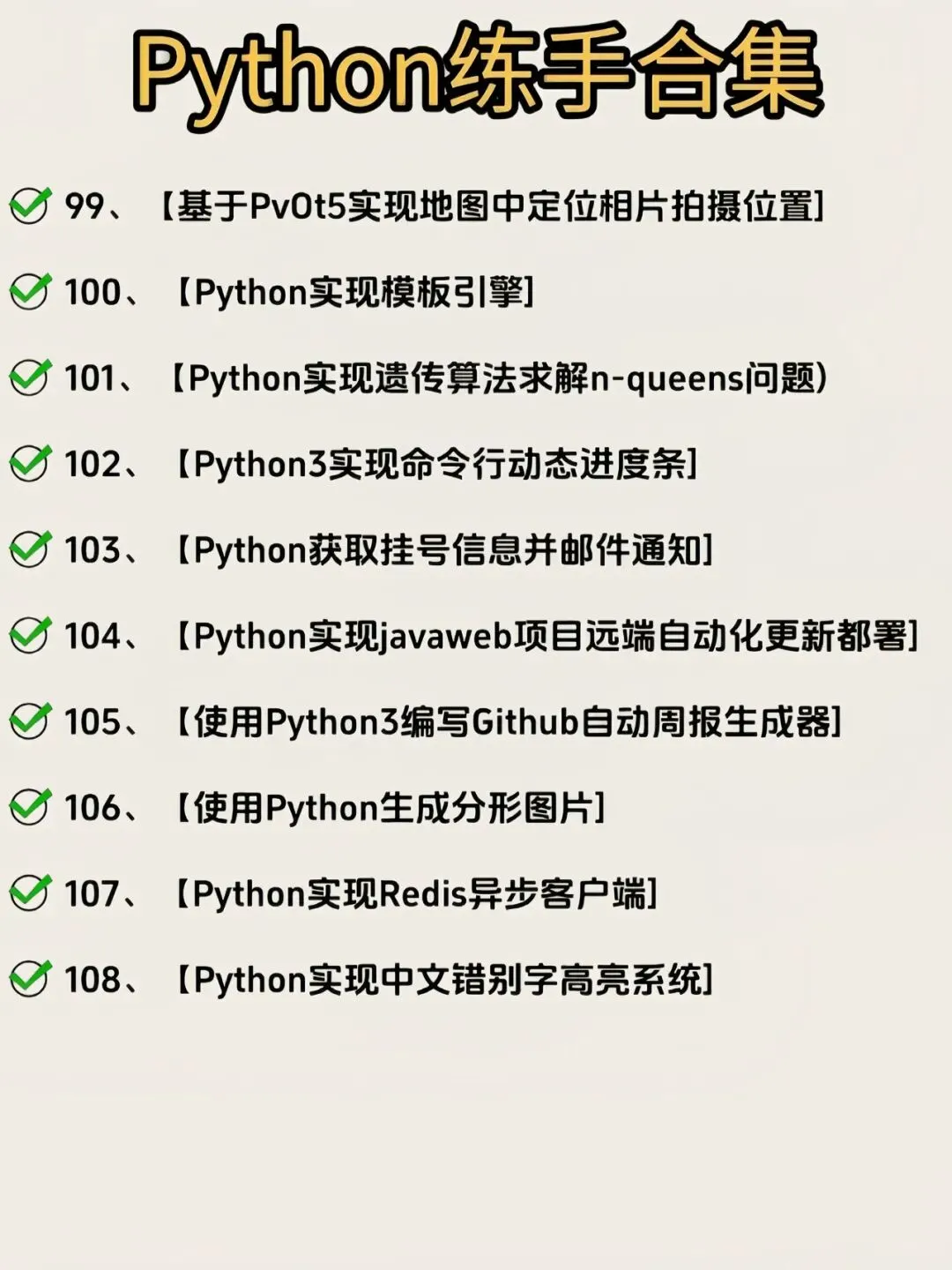 >硬核提升!108 个 Python 项目练完就能用