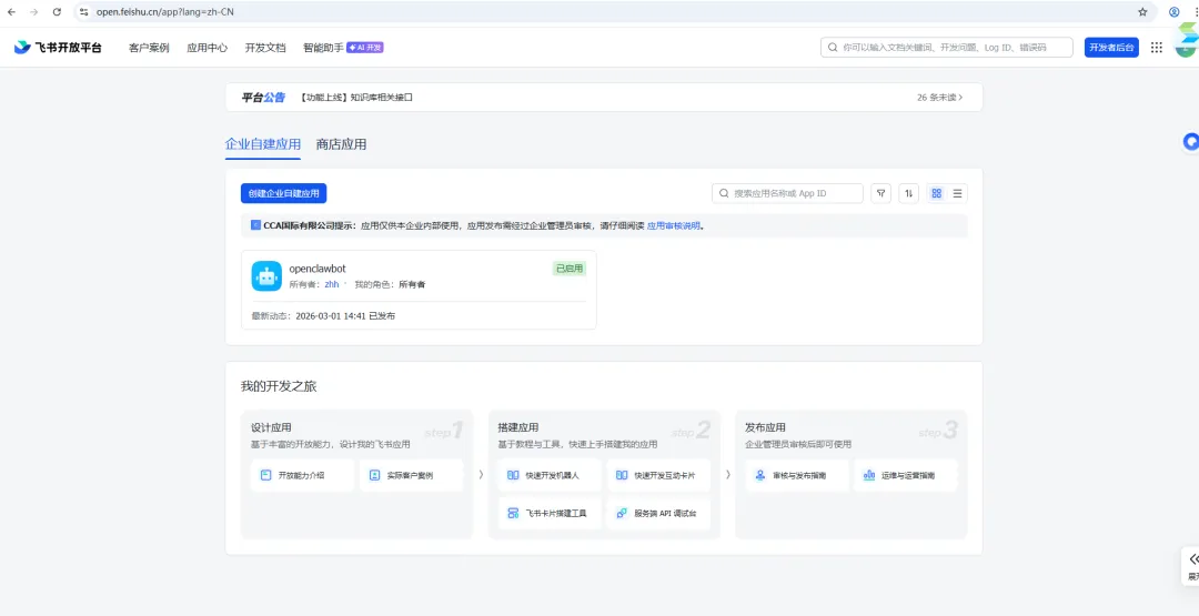 地址:https://open.feishu.cn/app?lang=zh-CN