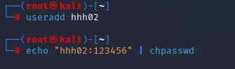 #centos系列:useradd hhh02echo "123456" | passwd --stdin hhh02#debian/ubuntu系列:useradd hhh02echo "hhh02:123456" | chpasswd