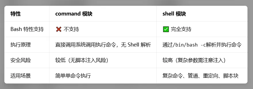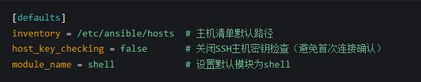 修改配置文件将默认模块从command改为shell,避免每次写-m shell: