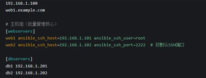 执行ansible webservers -m ping时,webservers是主机组,定义在/etc/ansible/hosts中:
