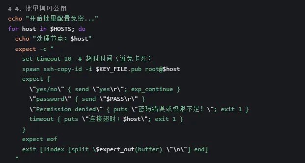 针对-k选项的痛点,编写批量配置 SSH 免密的脚本,提升效率: