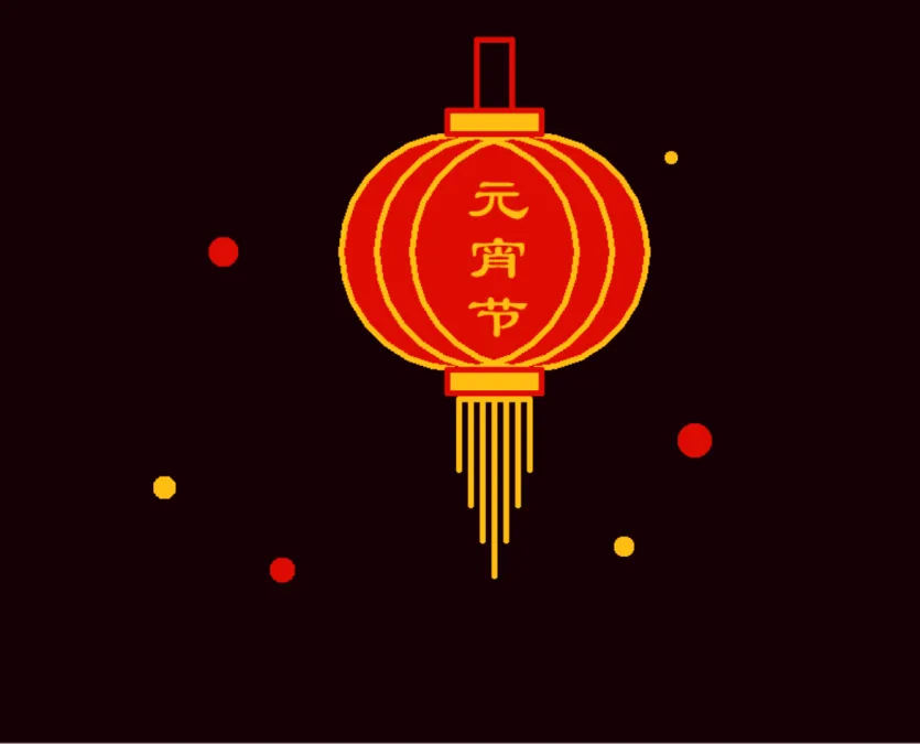 # 画红灯笼### 程序初始化设置import turtleturtle.bgcolor("#160005") # 设置背景颜色为#490305深红色。可试其他颜色(#02102d深蓝色 #610327深紫色 #160005黑红色)turtle.speed(0) # 设置海龟绘图的速度,参数为0时最快turtle.pensize(5) # 设置画笔粗细,即画灯笼线条的粗线为5### ① 画灯笼主体部分(三个圆交错)turtle.pencolor("#ffbd11") # 设置画笔颜色,即灯笼线条颜色为#ffbd11,一种黄色turtle.fillcolor("#de0b02") # 设置填充颜色,即灯笼颜色为#de0b02,一种红色turtle.begin_fill() # 开始填充颜色turtle.circle(100) # 画半径为100的圆turtle.forward(30) # 画完一个圆后,海龟向前移动30像素turtle.circle(100) # 继续再画一个半径为100圆turtle.forward(30) # 海龟再向前移动30像素turtle.circle(100) # 最后再画一个圆。形成三圆交错效果。turtle.end_fill() # 结束填充颜色### ② 画灯笼下面的长方形(长80,宽20)turtle.pencolor("#de0b02") # 长方形描边 一种红色turtle.fillcolor("#ffbd11") # 长方形填充颜色,一种黄色turtle.begin_fill()turtle.forward(10)turtle.right(90)turtle.forward(20) # 长方形的宽turtle.right(90)turtle.forward(80) # 长方形的长turtle.right(90)turtle.forward(20) # 长方形的宽turtle.right(90)turtle.forward(80) # 长方形的长turtle.end_fill()# 海龟移动到上面,准备画上面的长方形turtle.penup()turtle.setheading(90) # 假如你想让海龟向上走,但一时又想不明白是左还是右,就可以用setheading()turtle.forward(200)turtle.pendown()### ③ 画灯笼上面的长方形(长80,宽20)turtle.pencolor("#de0b02") # 长方形描边,一种红色turtle.fillcolor("#ffbd11") # 长方形填充颜色,一种黄色turtle.begin_fill()turtle.forward(20) # 长方形的宽turtle.left(90)turtle.forward(80) # 长方形的长turtle.left(90)turtle.forward(20) # 长方形的宽turtle.left(90)turtle.forward(80) # 长方形的长turtle.end_fill()### ④ 画提绳(长60,宽30)turtle.setheading(90)turtle.forward(20)turtle.setheading(180)turtle.forward(25)turtle.setheading(90)turtle.forward(60) # 提绳的长turtle.setheading(180)turtle.forward(30) # 提绳的宽turtle.setheading(-90)turtle.forward(60)# 海龟移动最下面,准备画掉穗turtle.penup()turtle.home() # 让海龟返回原点(0,0)turtle.setheading(-90)turtle.forward(25)turtle.pendown()### ⑤ 画掉穗(从左至右画7条穗子)turtle.pencolor("#ffbd11")turtle.forward(60) # 画第1穗turtle.backward(60)turtle.setheading(0)turtle.forward(10)turtle.setheading(-90)turtle.forward(90) # 画第2穗turtle.backward(90)turtle.setheading(0)turtle.forward(10)turtle.setheading(-90)turtle.forward(120) # 画第3穗turtle.backward(120)turtle.setheading(0)turtle.forward(10)turtle.setheading(-90)turtle.forward(150) # 画第4穗(最中间的穗子)turtle.backward(150)turtle.setheading(0)turtle.forward(10)turtle.setheading(-90)turtle.forward(120) # 画第5穗 (和第3穗一样长)turtle.backward(120)turtle.setheading(0)turtle.forward(10)turtle.setheading(-90)turtle.forward(90) # 画第6穗(和第2穗一样长)turtle.backward(90)turtle.setheading(0)turtle.forward(10)turtle.setheading(-90)turtle.forward(60) # 画第7穗(和第1穗一样长)turtle.backward(60)turtle.setheading(0)### ⑥ 写字“元宵节”turtle.penup()turtle.goto(8,120)turtle.write("元",font=("隶书",40)) # 写“春”turtle.pendown()turtle.penup()turtle.goto(8,70)turtle.write("宵",font=("隶书",40)) # 写“节”turtle.pendown()turtle.penup()turtle.goto(8,20)turtle.write("节",font=("隶书",40)) # 写“节”turtle.pendown()### ⑦ 画散落的圆点(6个圆点坐标要不同)# turtle.speed(1) # 可减慢画图速度,观察调整圆的坐标位置turtle.penup()turtle.goto(-200,100)turtle.dot(26,"#de0b02") # 画第1个点turtle.pendown()turtle.penup()turtle.goto(-250,-100)turtle.dot(20,"#ffbd11") # 画第2个点turtle.pendown()turtle.penup()turtle.goto(200,-60)turtle.dot(30,"#de0b02") # 画第3个点turtle.pendown()turtle.penup()turtle.goto(180,180)turtle.dot(12,"#ffbd11") # 画第4个点turtle.pendown()turtle.penup()turtle.goto(-150,-170)turtle.dot(22,"#de0b02") # 画第5个点turtle.pendown()turtle.penup()turtle.goto(140,-150)turtle.dot(18,"#ffbd11") # 画第6个点turtle.pendown()### 海龟结束画图,隐藏海龟turtle.hideturtle()turtle.done()