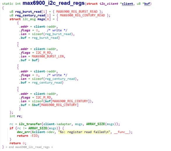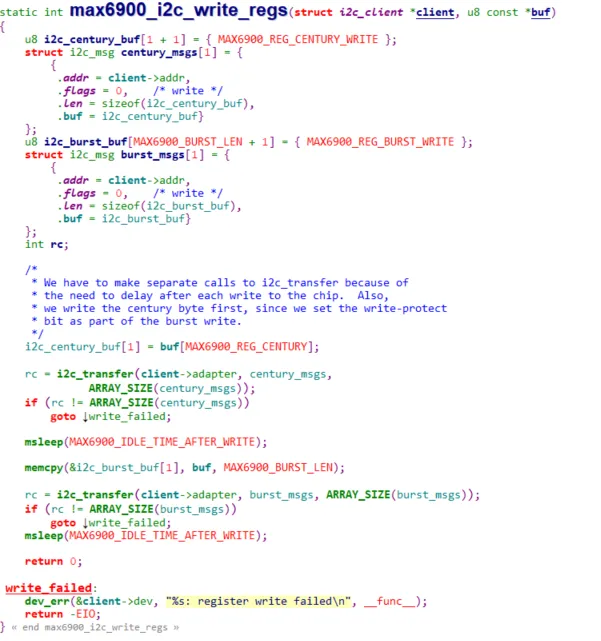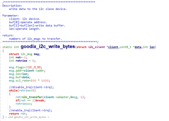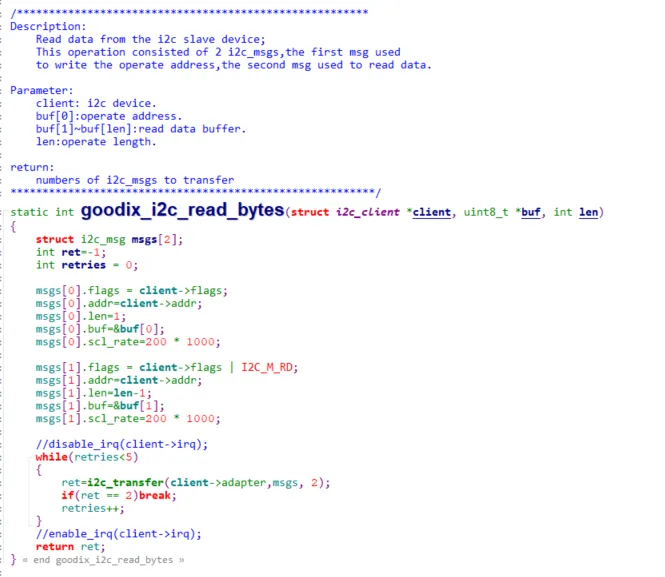 devm_kzalloc(GFP_KERNEL),需用 GFP_ATOMIC; - 数据长度:I2C