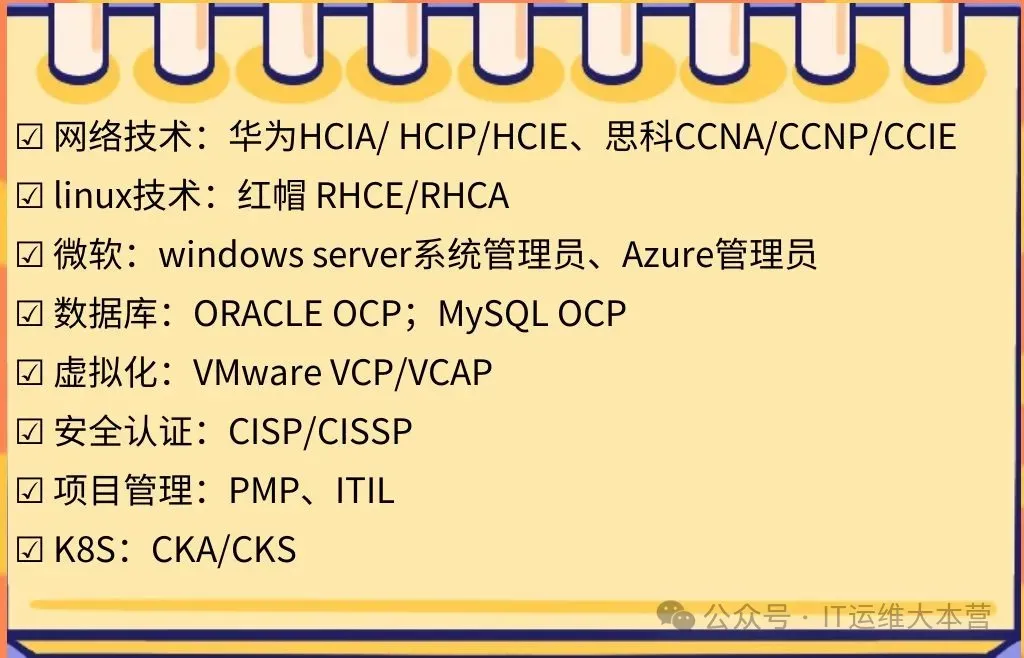 Oracle认证是深耕甲骨文生态的专项通行证,在银行、保险、证券等传统行业中备受青睐,持有该认证的运维人员往往更具竞争力。