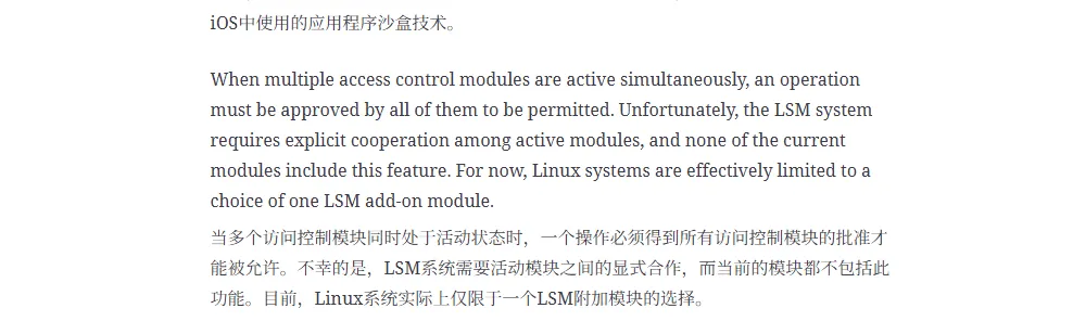 “目前,Linux 系统实际上仅限于一个 LSM 附加模块的选择。”