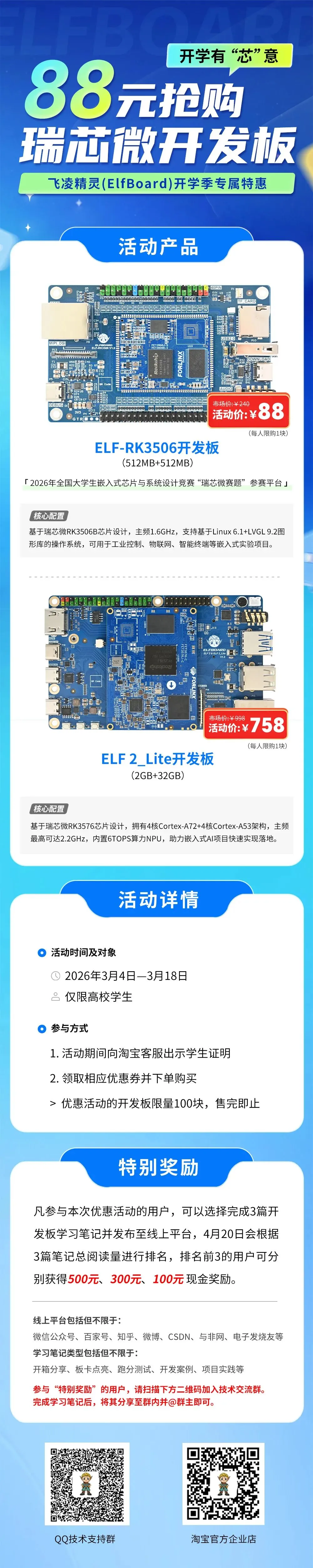 飞凌精灵(ElfBoard)推出瑞芯微开发板开学季专属特惠活动,最低88元