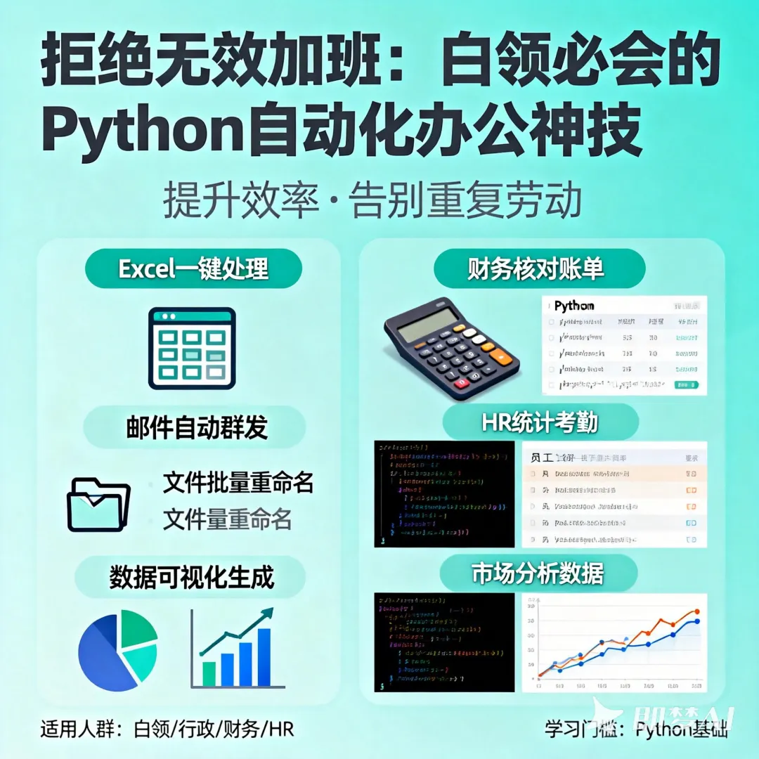 Python 不仅仅是程序员的工具,更是现代职场人的**“超级瑞士军刀”**。本文将为你介绍几项最实用、零基础也能上手的 Python 小技巧,助你从繁杂的琐事中解脱,将精力集中在更具价值的工作上。