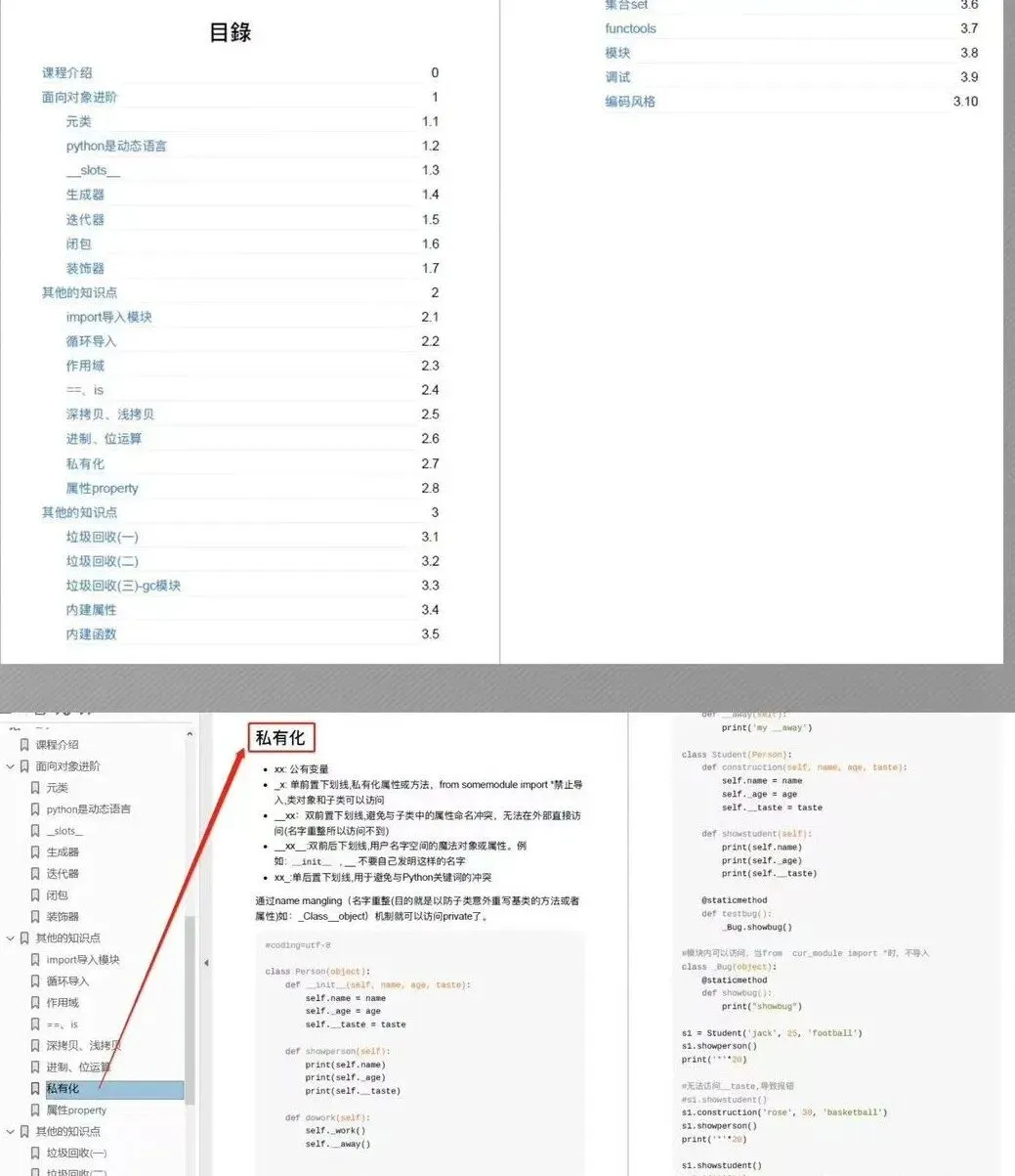 这份文档涵盖基础知识,Linux基础、Python高级知识、linux系统编程、web服务器、网络编程、正则表达式详解、数据结构与算法、MySQL、mango、redis、前端、django、爬虫、tornado、shell等。。。内容非常全面,知识点众多。一本在手,Python不愁!切忌贪多食用,先选择自己的学习方向配合案例学练结合。