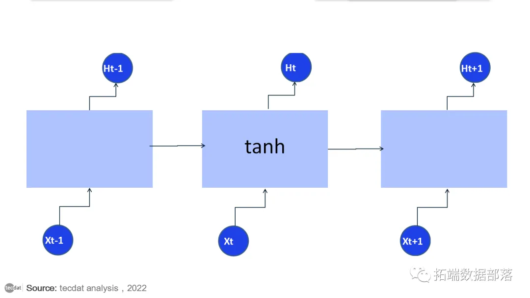所有循环神经网络都具有神经网络的重复模块链的形式。在标准 RNN 中,此重复模块将具有非常简单的结构,例如单个 tanh 层。
