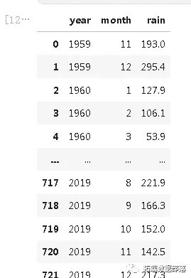 该数据集由722个月的降雨量数据组成。