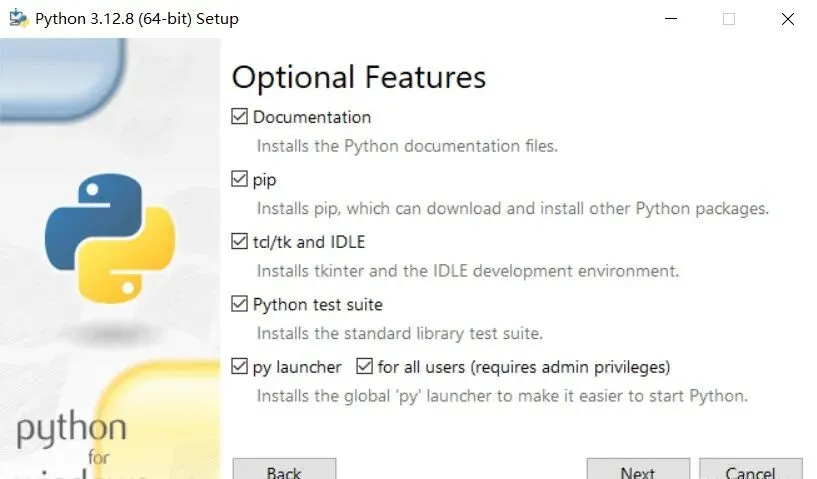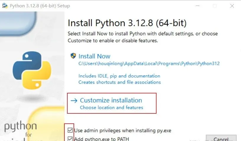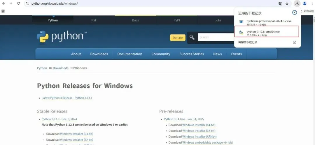 根据自己电脑的配置选择合适的版本下载,本文选择Python 3.12.8 在Windows x64环境下安装 x64 Installer。2. 安装 Python