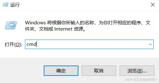 按 Win + R 打开运行对话框,输入 cmd 并按回车,打开 命令提示符。