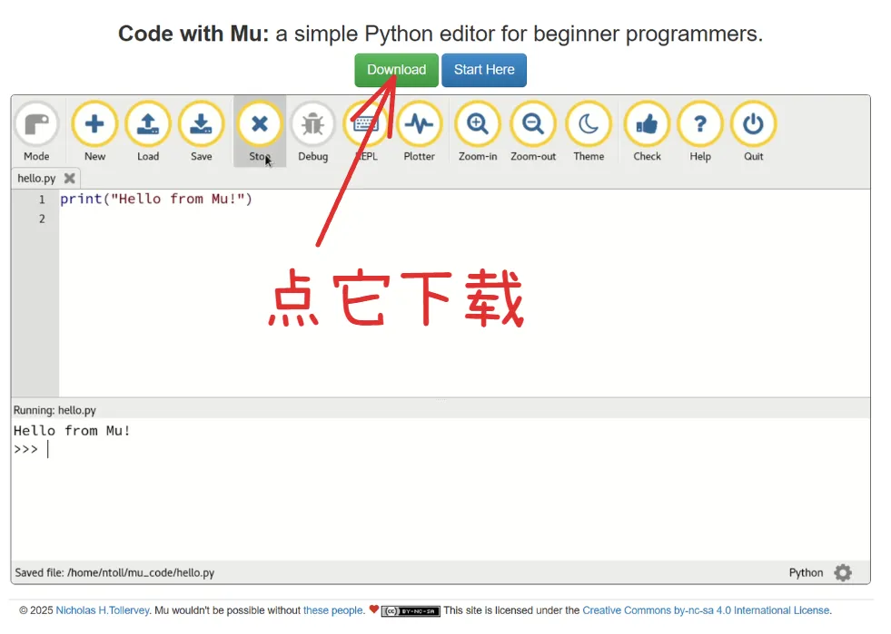 写代码总得有个地方吧?这就像写作文要有本子。我们用的就是 Mu Editor。
