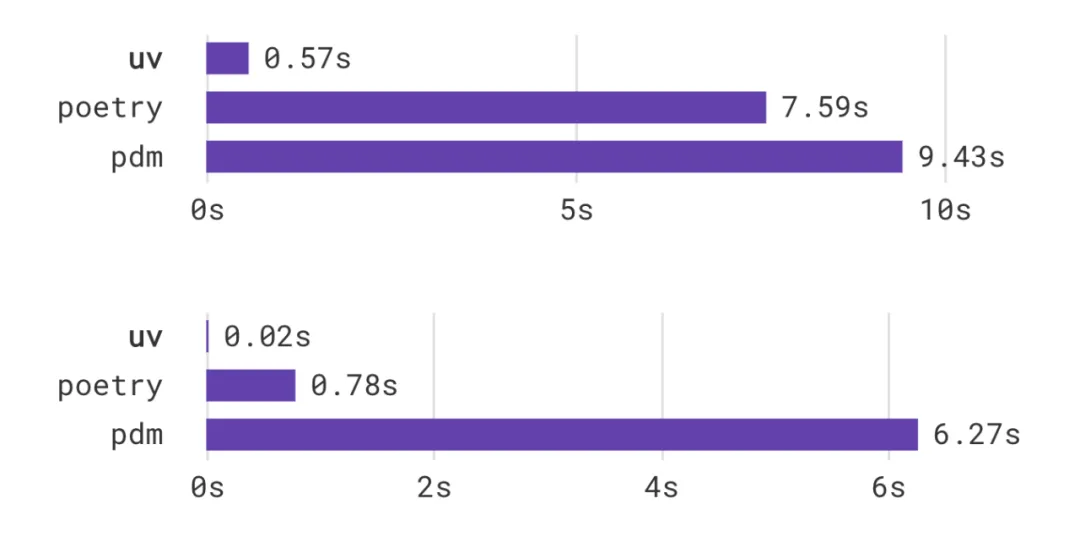 而且它做得非常快。在没有任何缓存的情况下,uv 可以在大约半秒钟内解析 Jupyter 项目的依赖项(在缓存预热的情况下约为 20 毫秒)。