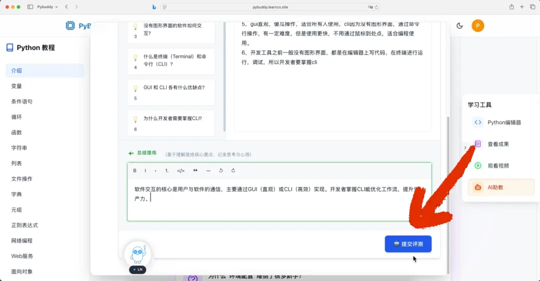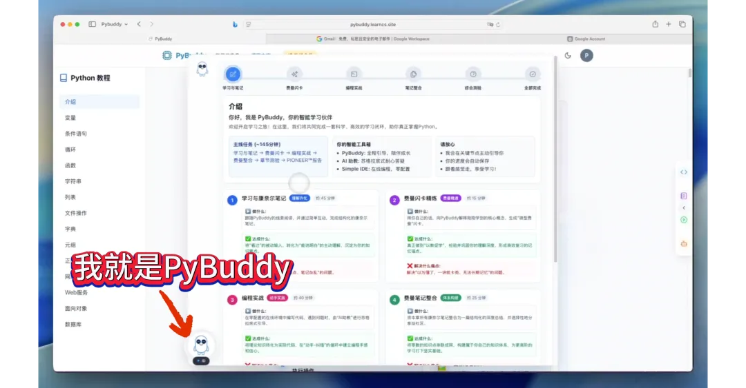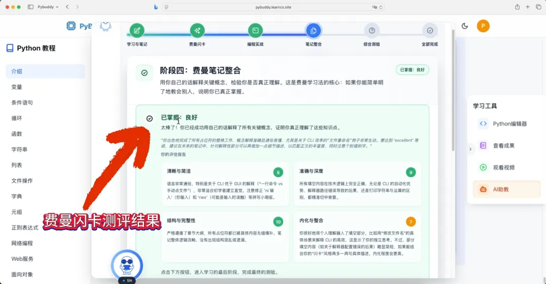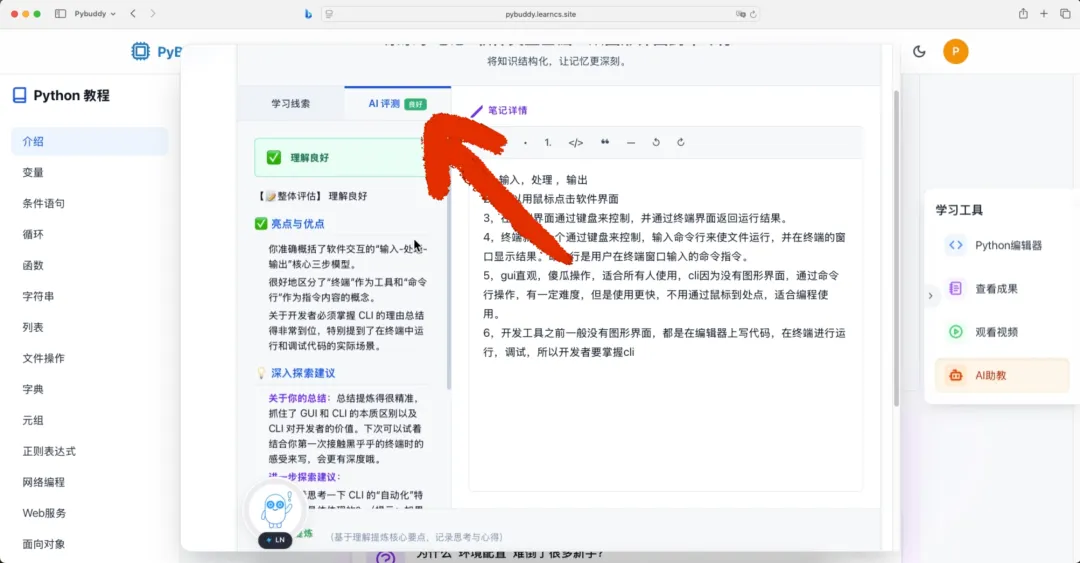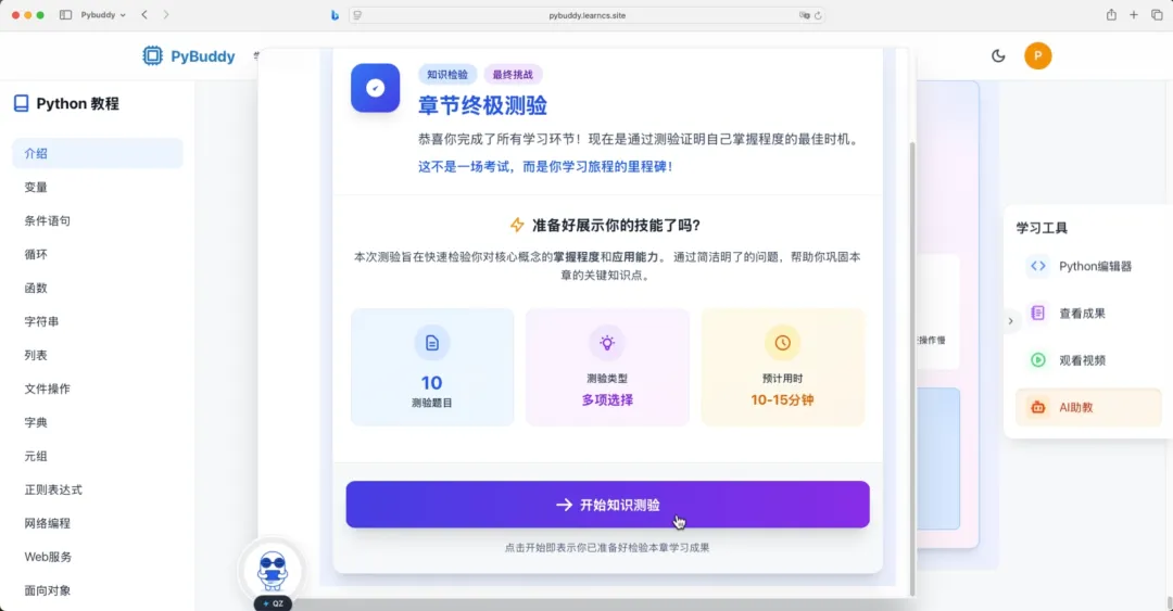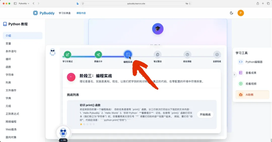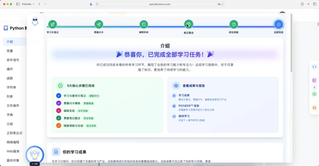在 AI 时代,学习不再是单向输入,而是在反馈中不断迭代自己。PyBuddy 不会替你完成任务,而是陪你一起,完成每一次真正的成长。