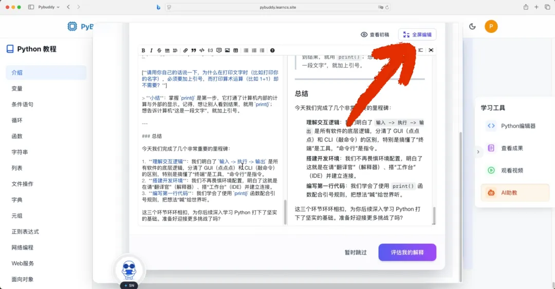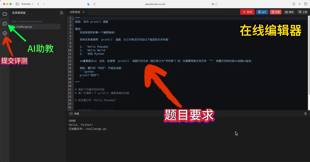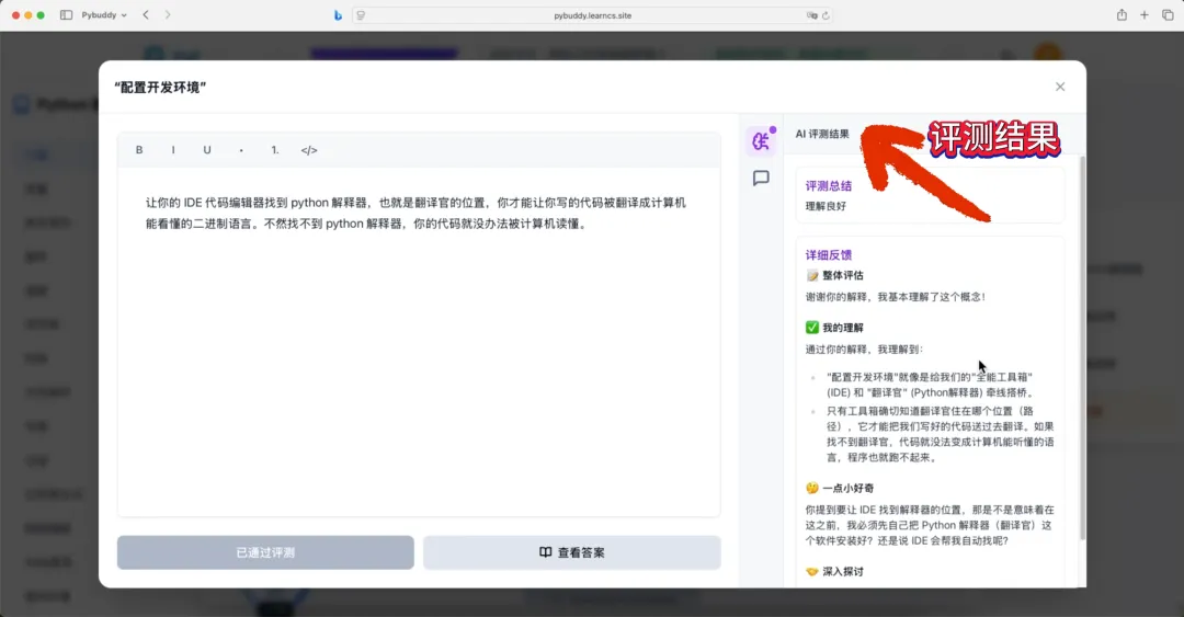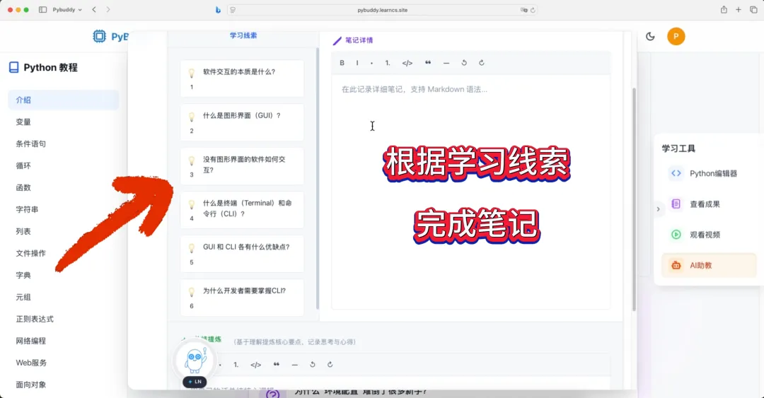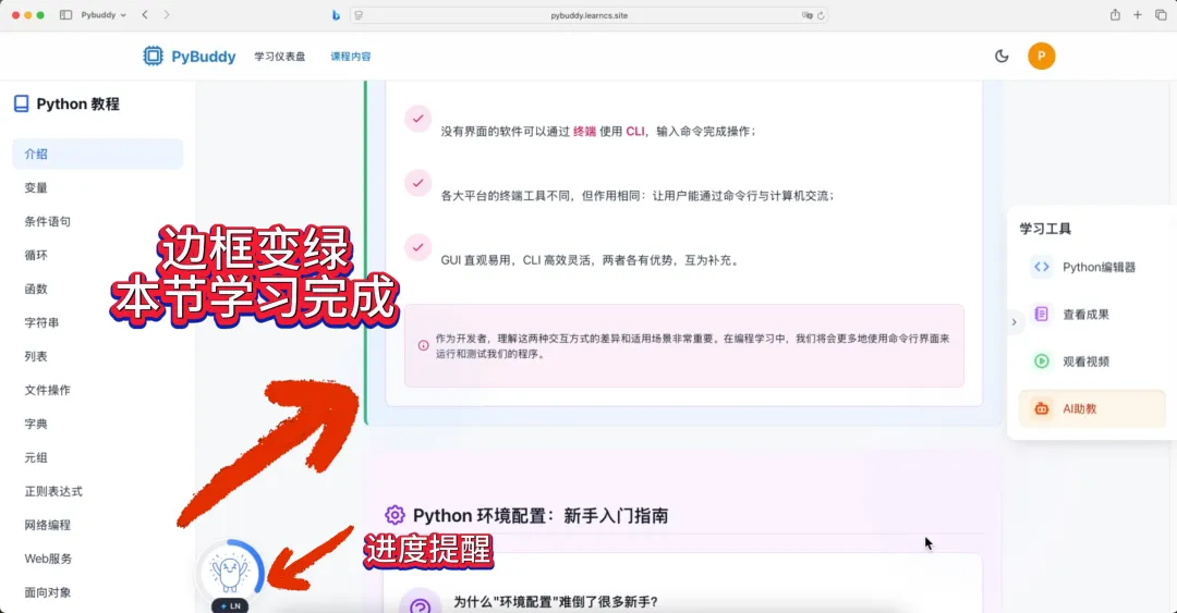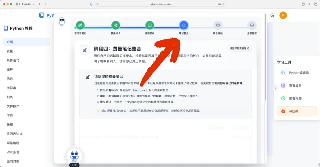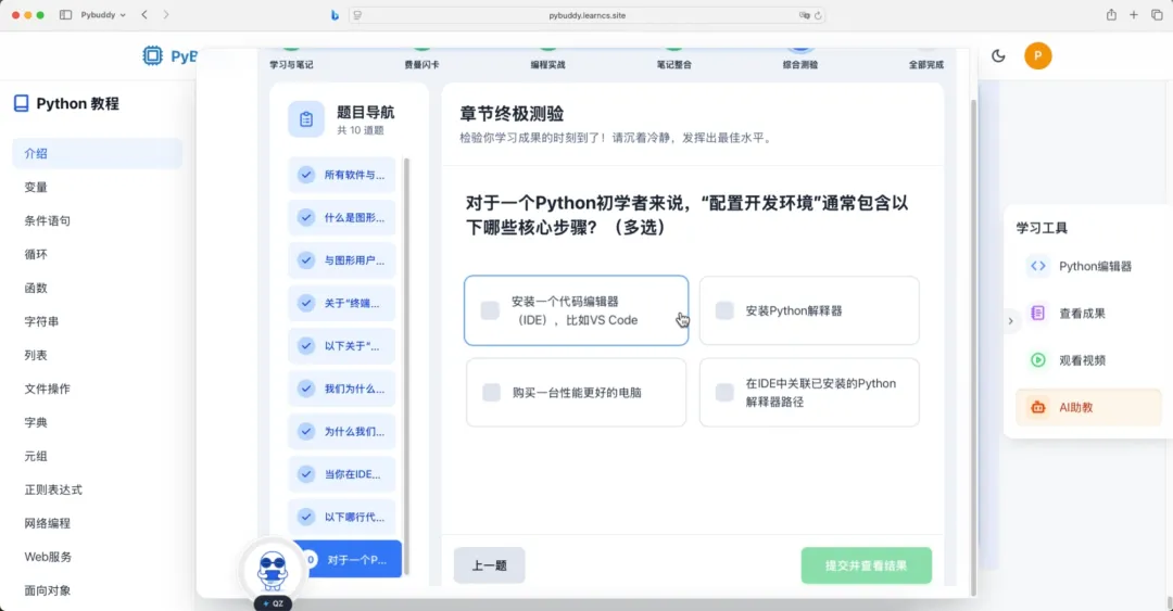 在 AI 时代,学习不再是单向输入,而是在反馈中不断迭代自己。PyBuddy 不会替你完成任务,而是陪你一起,完成每一次真正的成长。
