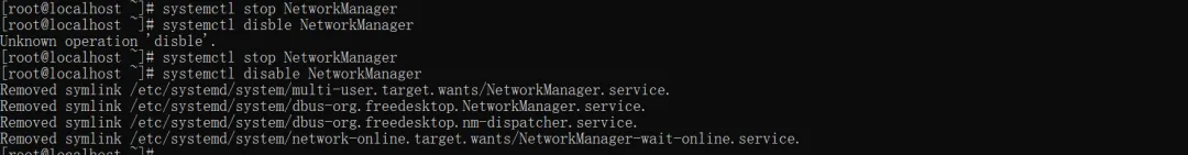 systemctl stop NetworkManagersystemctl disable NetworkManager
