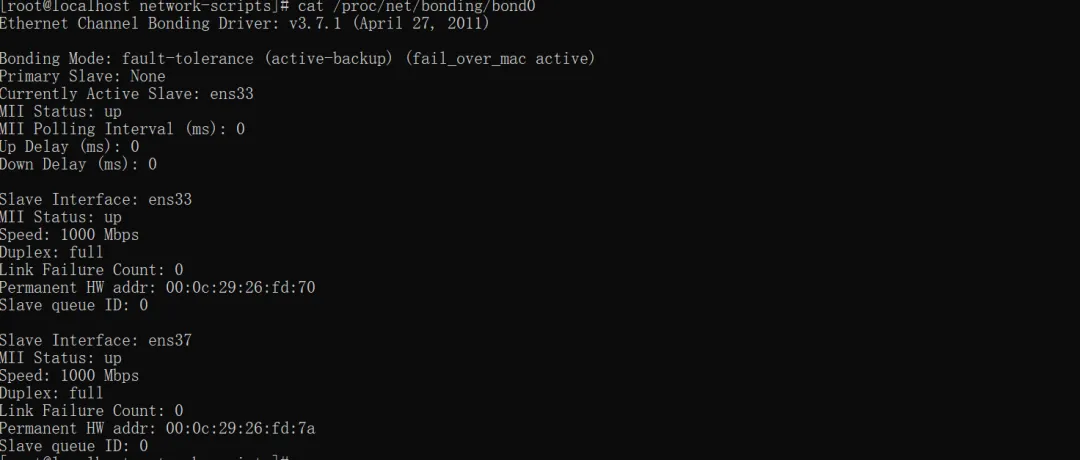 TYPE=EthernetBOOTPROTO=noneNAME=ens37DEVICE=ens37ONBOOT=yesMASTER=bond0SLAVE=yesNM_CONTROLLED=no