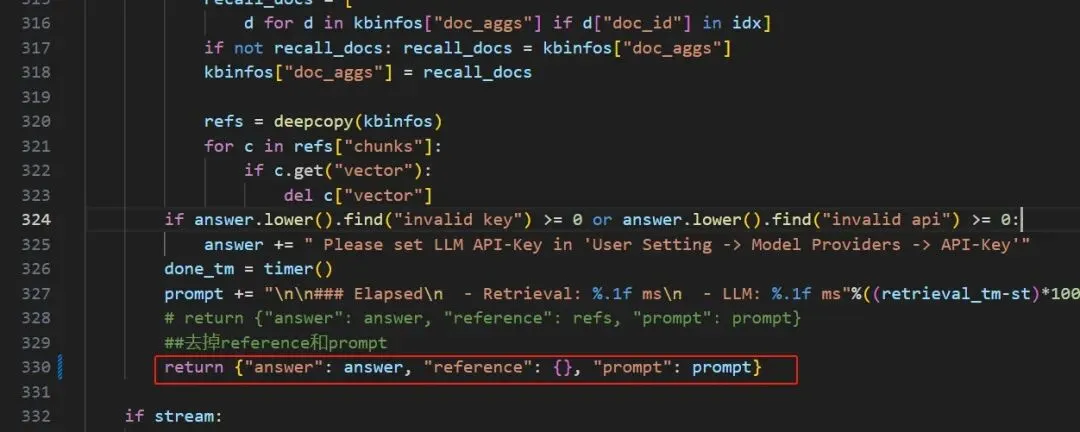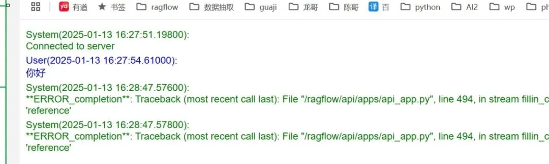 {'retcode': 0, 'retmsg': '', 'data': {'answer': '您好,看起来您的消息可能不完整或者是一串', 'reference': {}, 'audio_binary': None, 'id': '7bb01faad16311ef85cbf020ff63f4c4'}}注:想着去掉reference,但报错了,如下: