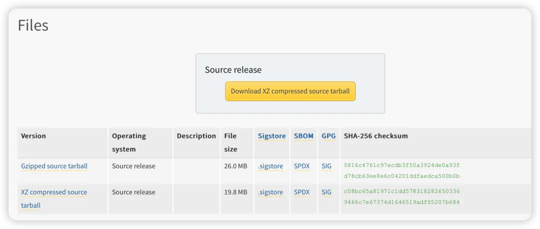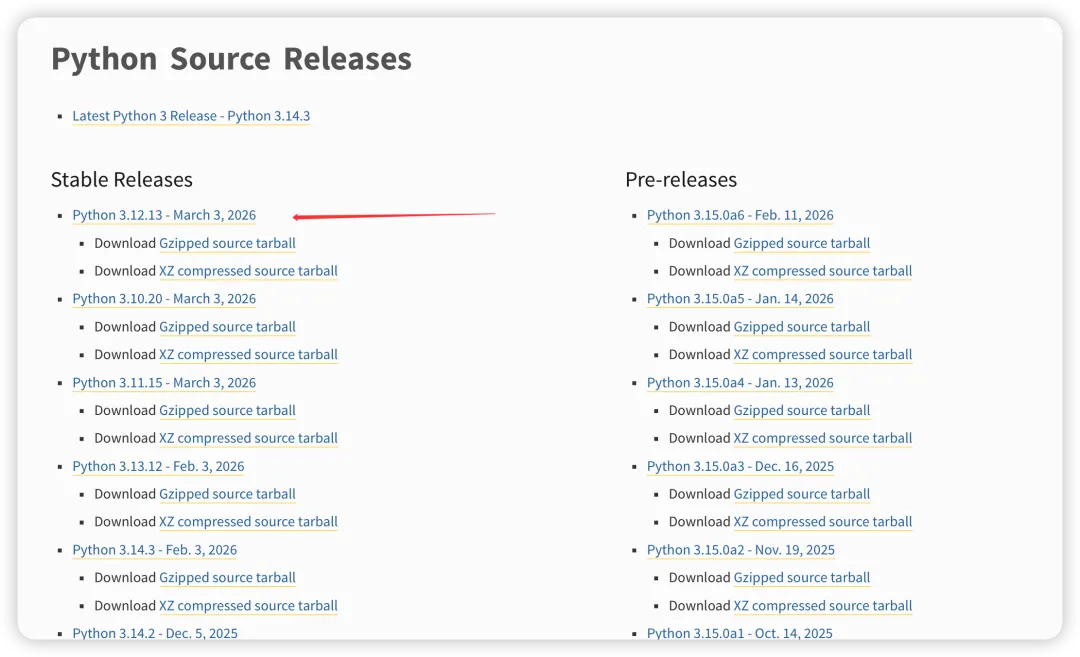 打开浏览器访问Python 源码下载地址,选择适合 Unix/Linux的源码压缩包;若服务器可直接联网,也可直接在 Linux 终端执行命令下载(无需浏览器操作,更便捷),命令如下: