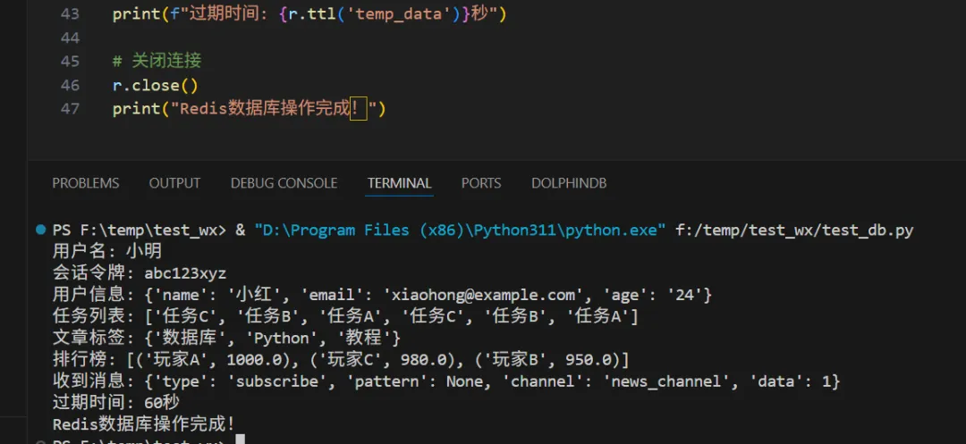 下面是一段python + Redis的数据库操作代码示例。