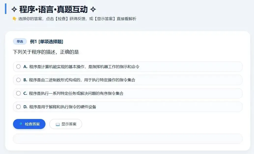 ✅ 高职考理论,侧重程序设计的逻辑理解与知识掌握。