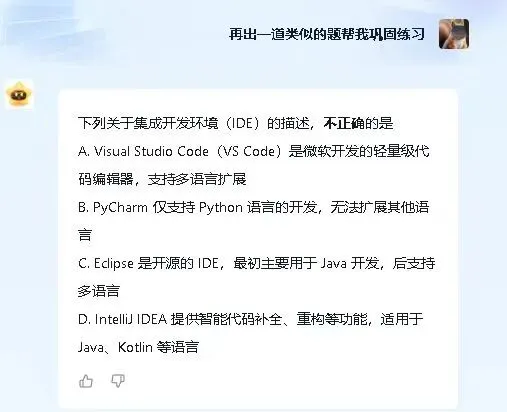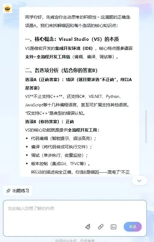 在教学过程中,要合理利用现有的技术来提升自己的教学效率。比如我们可以通过将练习测试与AI答疑进行结合,让学生在碰到问题的时候,能进行自主的学习与探究。