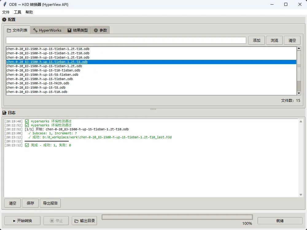 subprocess 并行执行多个转换任务(注意 HyperWorks 许可证限制) - • 添加日志记录与异常重试机制,提升批量任务鲁棒性