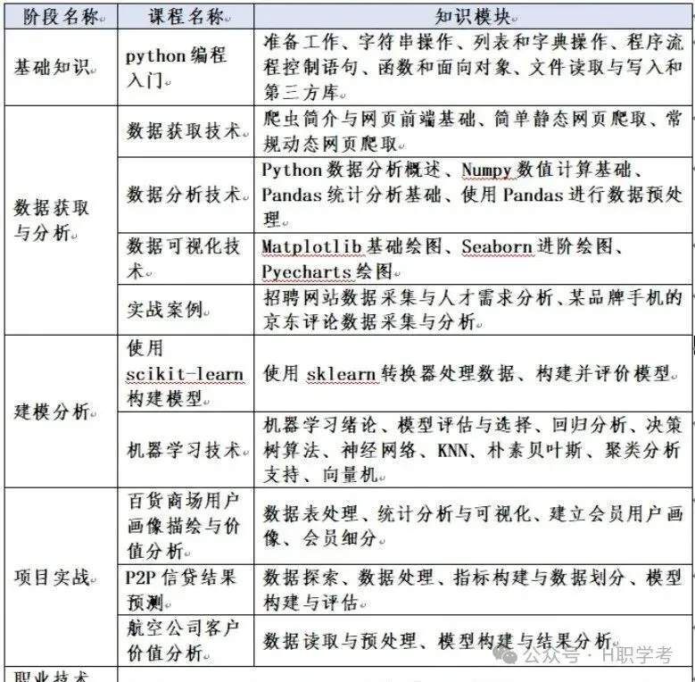 初级:认证始于Python与爬虫技术,随后系统讲授Numpy、Pandas、Matplotlib等数据分析工具。课程引入机器学习算法及sklearn实现,通过用户画像、信贷预测等实战项目,串联数据采集、处理、分析与建模全流程,验证学习者具备初级数据工程师解决实际商业问题的技术能力。