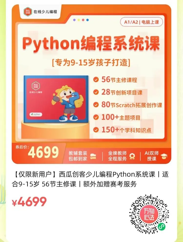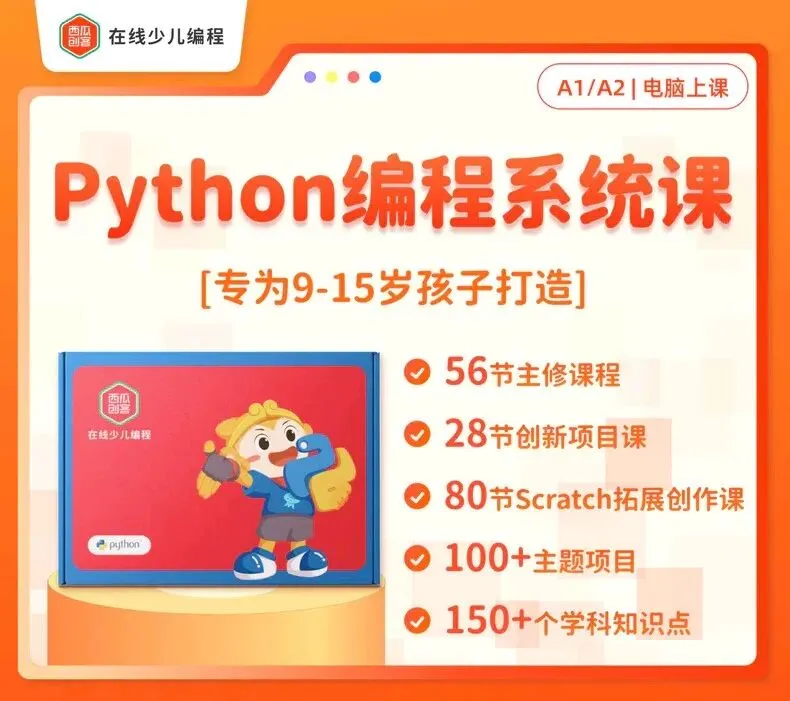 西瓜创客少儿编程Python系统课开团!适合9-15岁,56节主修课