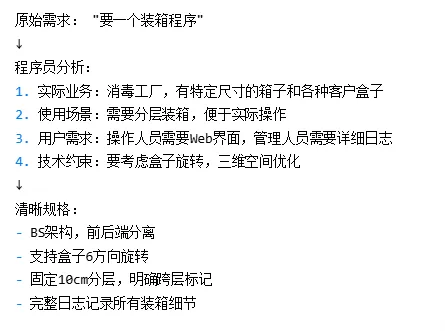 在装箱系统项目中,程序员完成了关键的问题定义: