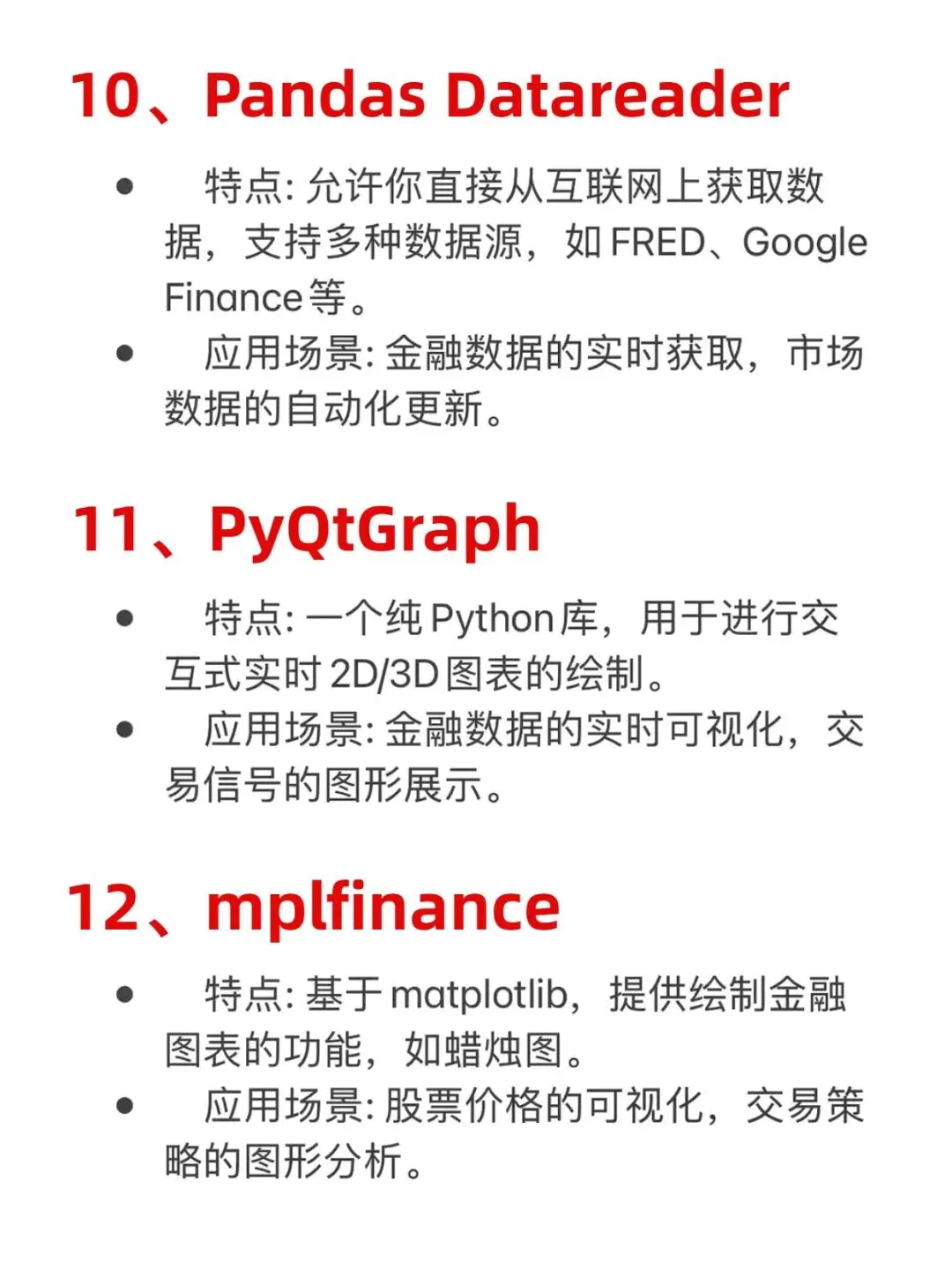 Python在金融分析领域拥有一些强大且流行的库,以下是15个常用且流行的Python金融分析库:
