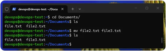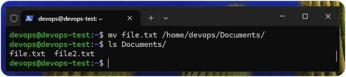 $ mv file.txt /home/devops/Documents