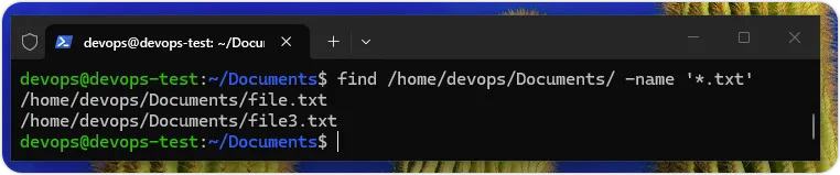 $ find /home/devops/Documents -name '*.txt'