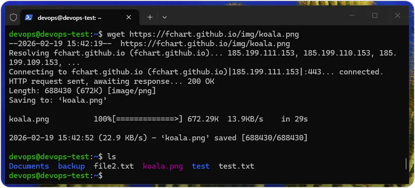 wget命令可以从网站下载指定文件至 Linux 子系统,我们只需知道文件的 URL 网址,就可以使用此命令来下载文件,如下所示:
