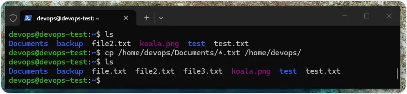 $ cp /home/devops/Documents/*.txt /home/devops/