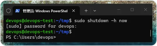 我们可以使用关机的 Linux 命令shutdown来安全地替 Linux 子系统关机,请注意!此命令需要使用sudo来执行,如下所示: