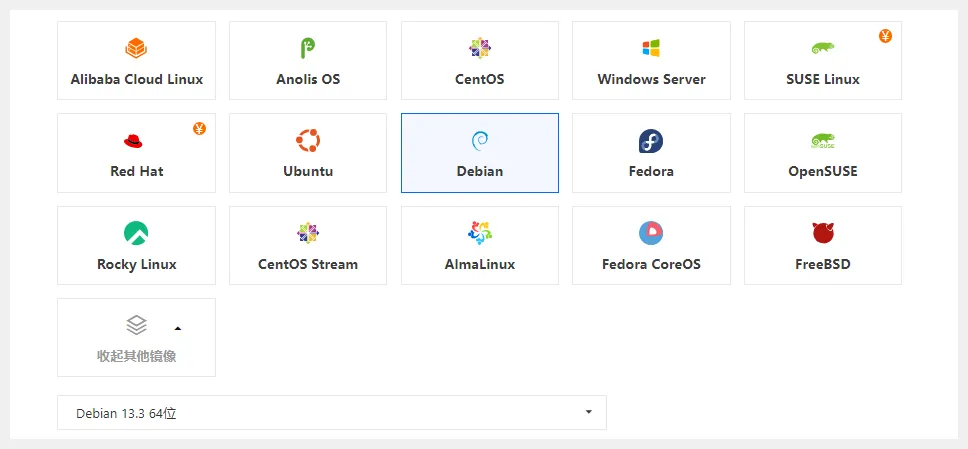 - 服务器只有 1–2G 内存 → Debian 12(轻量)