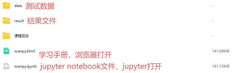 ✅ 海量资源:配套Python版scRNA-seq骨灰级分析手册 + 代码 + 测试文件(~50GB、490个文件)!