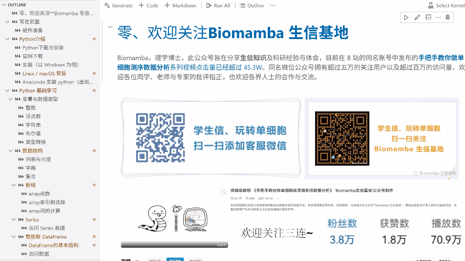 同我们以前的课程一样,我们给大家准备了学习手册和学习资料,大家可联系客服微信[Biomamba_yunying]领取: