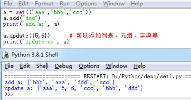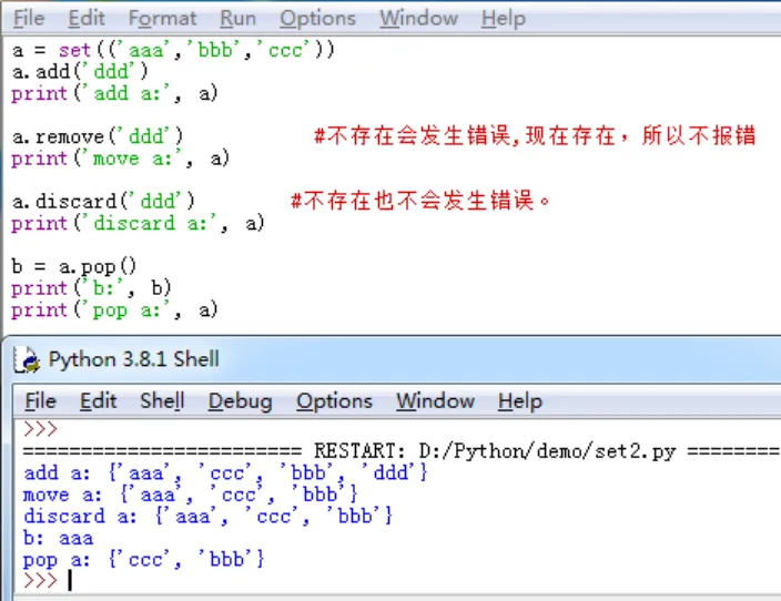 将元素x添加到集合s中,如果元素已存在,则不进行任何操作。还有一个方法,也可以添加元素,且参数可以是列表,元组,字典等,语法格式如下:2、移除元素