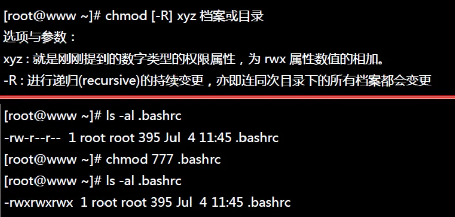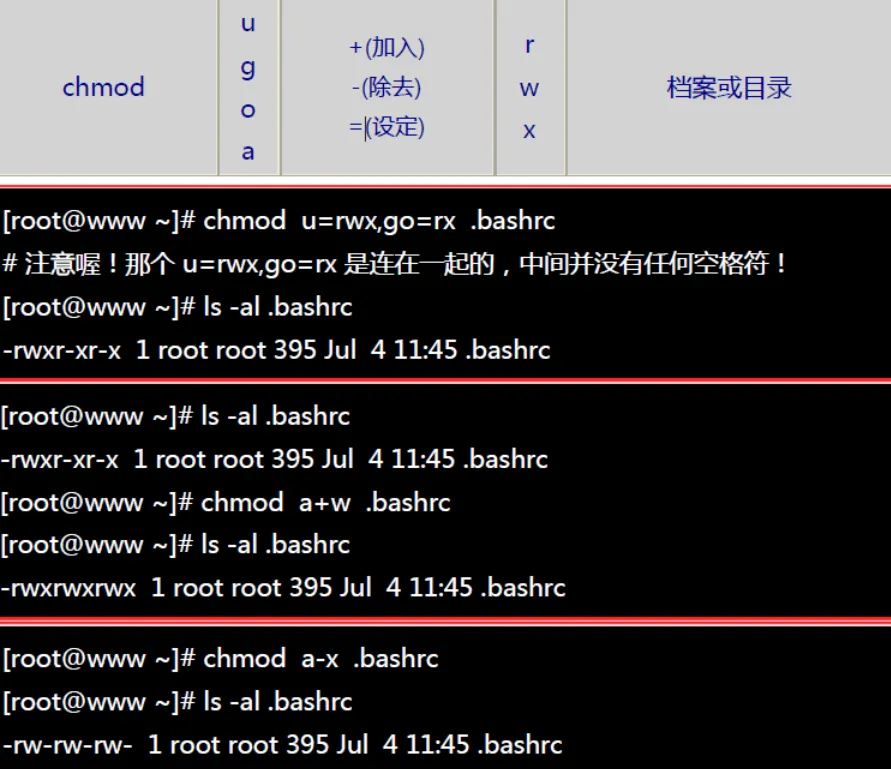[root@www tmp] ls -l <==看看有多少目录存在?drwxr-xr-x 3 root root 4096 Jul 18 12:50 test